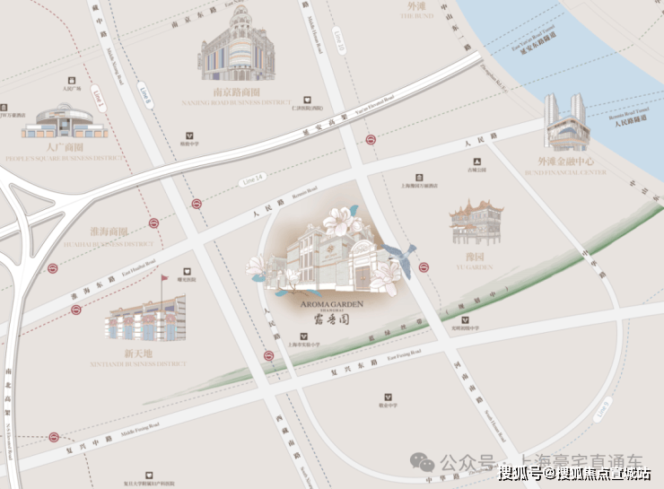 作为上海的绝对市心,露香园直线距离人民广场、淮海路、外滩、豫园等上海市地标性区域均不超过1.5公里,距离陆家嘴直线公里。