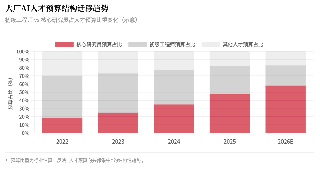 大厂用AI替代数以千计的初级工程师,将省下的“人头费”全部梭哈在那几十个核心大脑上。“以底养顶”的循环下,组织的预算正从宽广的毛细血管,强行汇入极少数的主干动脉。