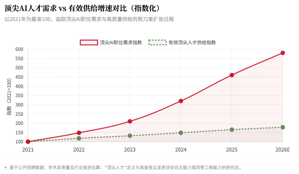 全球具备独立主导前沿AI研究能力的人才,存量不超过数千人,且短期内几乎无法通过教育体系快速补充。国内AI相关职位已占新经济领域新增岗位的四分之一以上,但AI岗位的供求比据业内机构估算仍低于全国平均水平。四家企业抢一个候选人,已成普遍现实。