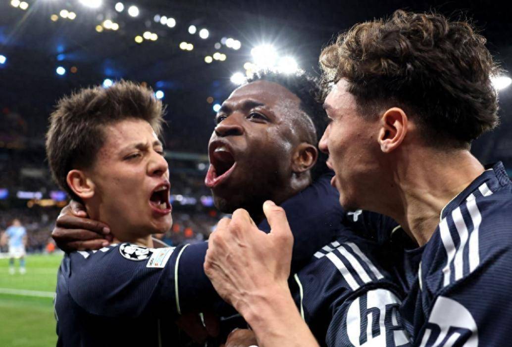 这是哈兰德在欧冠淘汰赛的第17个进球,效率惊人。扳平后曼城一度士气大振,下半场还由多库打进一球,可惜越位在先被吹掉了。皇马这边也有调整,库尔图瓦半场结束后因伤被卢宁换下,但防线还算稳固。比赛眼看要以平局收场,补时第3分钟,楚阿梅尼右路送出一记精准的传中,维尼修斯鬼魅般地出现在门前,垫射破门,完成了梅开二度,也杀死了比赛。 皇马两回合5比1,赢得没话说。