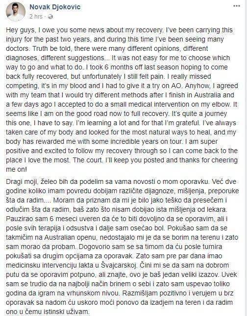 很多人只记得德约2018年温网王者归来,但很少有人记得他之前经历了什么。2016年法网实现全满贯后,德约科维奇的肘伤开始爆发。2017年他早早结束赛季,但情况并未好转,最终他在2018年下定决心根治,并在同年二月做了肘部手术。