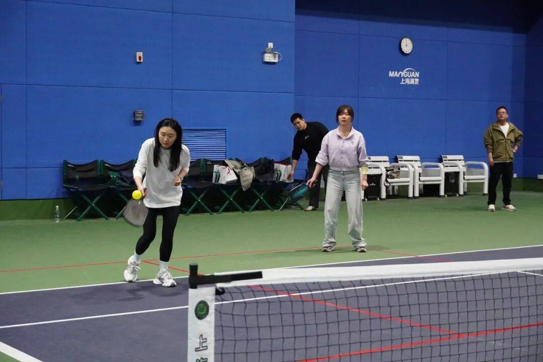 在体验赛中,大家分组对抗,轮番上阵。虽然是初次接触,但匹克球友好的球速和清晰的规则让每一分都充满悬念与乐趣。