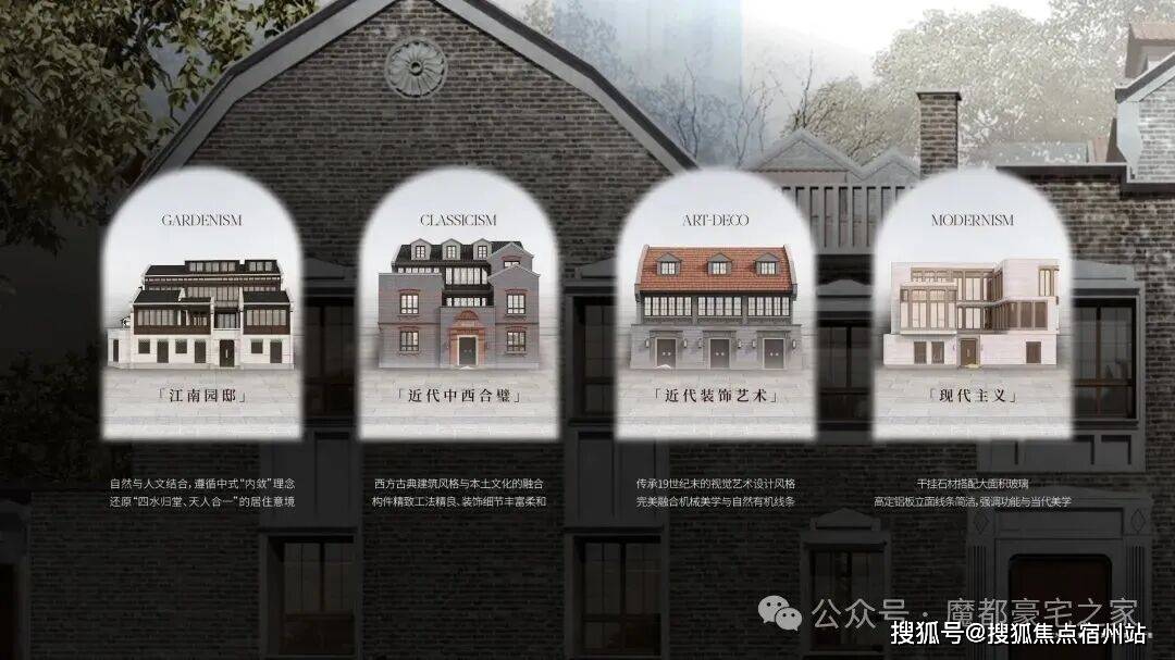 贯彻“中意西景、中正西融”景观理念,以中式花园隐居哲学核心,传承中式里弄记忆、融合西式花园情调。提取场地四种建筑和场域风格特征,营造中西风貌交叠的别墅花园景观,演绎当代海派风情里弄人居。