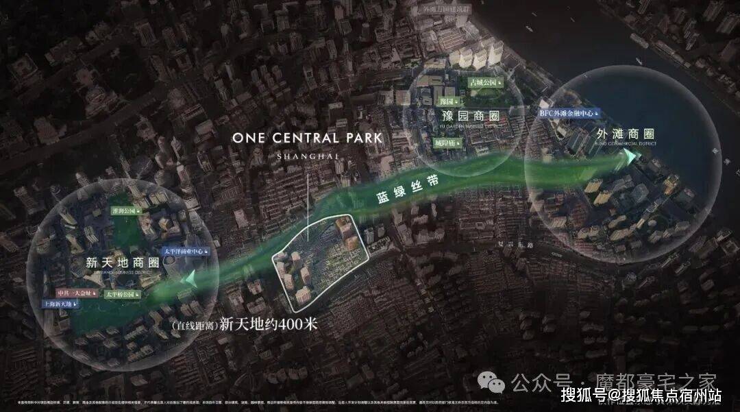 距离新天地直线米,作为蓝绿丝带规划上的关键节点,随着大新天地东进南拓战略逐步实施,通过水景、绿地和公共空间,串联新天地、豫园、外滩三大世界级商业版图。