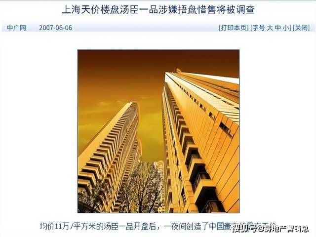 2007年,汤臣一品还曾因涉嫌捂盘惜售被上海市房屋土地资源管理局调查,被认为有价格虚高、自我炒作的嫌疑,引发了全国楼市整顿。