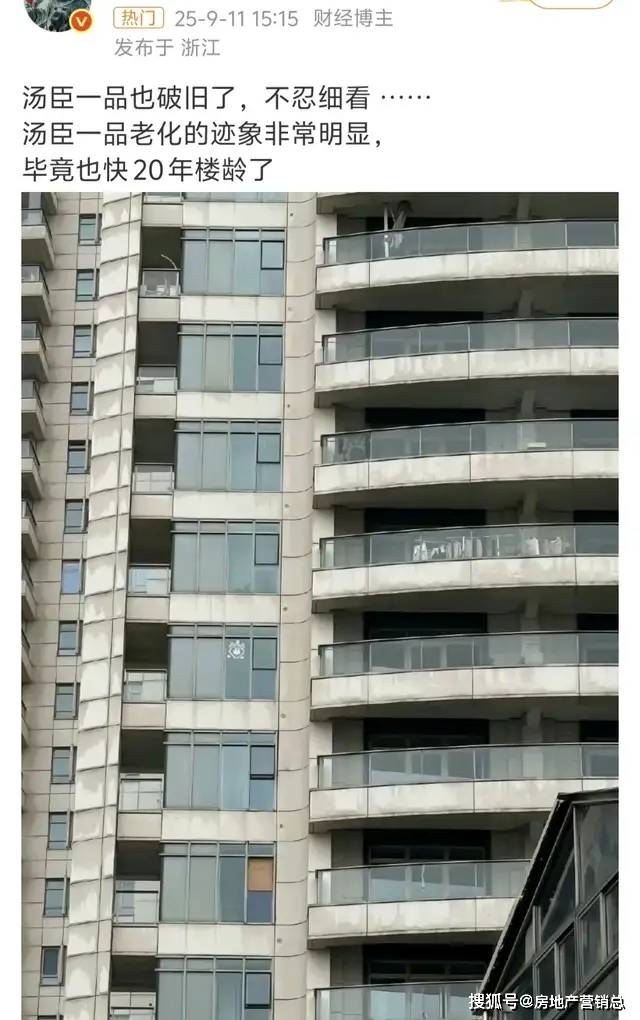 如今经过二十年的使用,在网友拍摄的图片下显示外立面出现污渍、褪色与光泽度下降,昔日“豪宅标杆”尽显沧桑。