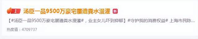 此前曾有业主称一套以9500万元购入的汤臣一品豪宅,因多次遭遇漏水、返水甚至粪水倒灌,业主与物业僵持多年。